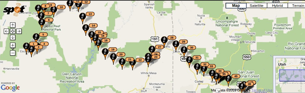 I am spending the night in Durango, Colorado, after one of the longer rides in this journey. It is already dark, and in the background I hear the chirping o crickets, mixed with the humming of trucks and cars that drive by on the highway. I think this will be a short journal entry, even though it is probably one of the most spectacular rides of my life. I took the longer route, again, using UT-12 East of Cannonville, and then UT-24. These two, take the more adventurous riders through the Escalante Grand Staircase System, and then through Capitol Reef. After that comes the Glen Canyon area. All I have to say is that Colorado can keep the Grand Canyon, even though I know it is in Arizona, and I will take EGSS-CR-GC any day. Extra points also awarded because they have a town called Hanksville, which was named after my favorite uncle from Menlo Park.