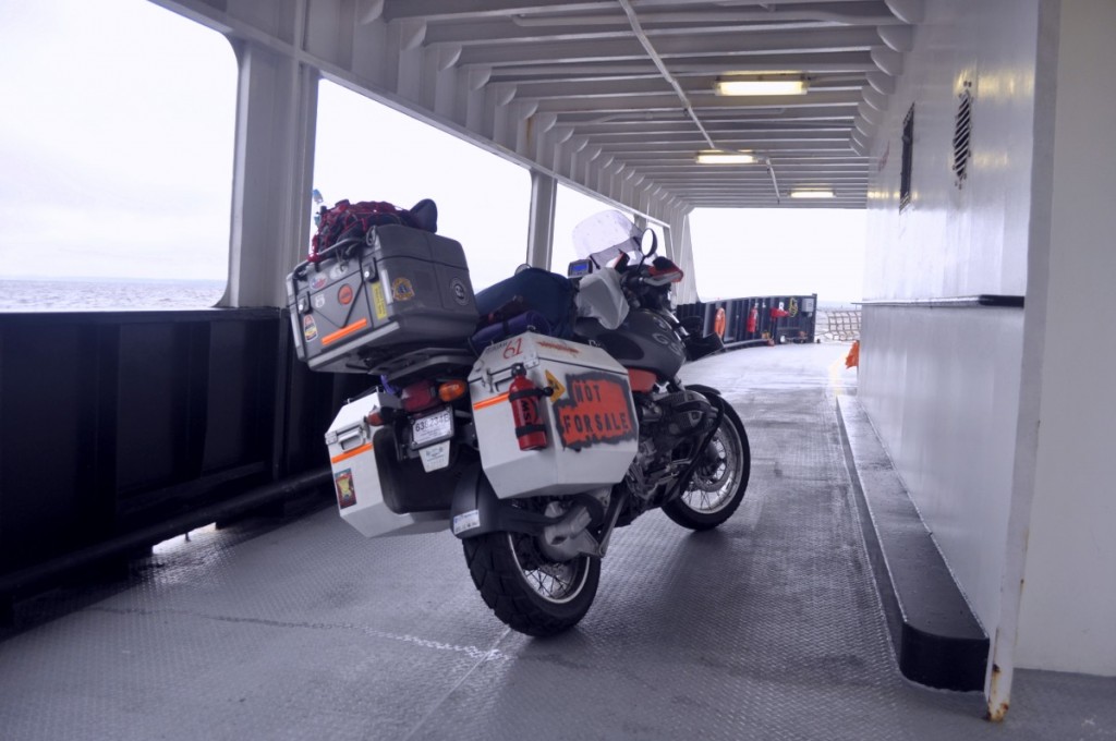 Rain started coming down while crossing the Pamlico River. By the time I got on the road, it was a steady drizzle. Yet, I was making reasonable progress. The small back roads were in good shape, and while I was traveling at a fifty mile/hour pace, things felt good. It all changed when I got onto a 4-lane road. The wind started blowing from the sides. On a couple of occasions I almost got blown onto a neighboring lane. But the scariest time came on another river crossing, where the visibility was minimal, and even at 27 mph the BeMWu entered into this regular fishtailing pattern. It almost felt like a choreographed dance. With such low visibility, steady rain, side winds, and a several mile long bridge, I felt a car or truck would end the dance for me. My hazard lights flashing, I kept repeating “Nice and Easy”, over and over again, interspersed with ‘Our Father’ prayers. With 120 miles to go at that point, I was thinking I would be riding for another 6 hours.