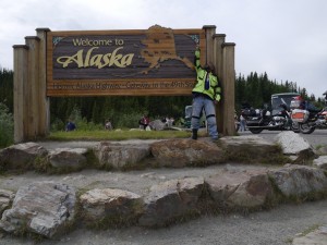 By late afternoon I arrived at to the Canada-US border. The pass through customs was preceded by a very long wait, where a single line of RVs and campers, cars, and bikers waited patiently to be seen through. After about 1 hour of snail pace crawling, I finally made it to the window. The officer, a good spirited guy who was working a double shift, made me feel welcomed back to the US. Upon asking him about the road conditions between there and Tok, where I had decided to sleep tonight, he said: “Excellent! Good old American roads. Nothing like the [crud] you just left behind”.