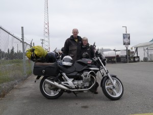 After the mandatory photo, I found a small local coffee bar. As I dismounted, a guy came over and asked where in Texas I was coming from, after looking at the Texas 2 Alaska writing on the BeMWu. When I said Houston, we both laughed at the coincidence, and then he said: “Ah, Houston, Texas. I love it, when I get there I can already smell the tequila from Mexico. By the way, watch out for the deer. We have a local Evil Knivel, and while pulling a wheelie, he split a deer. He barely remembers any of it”.