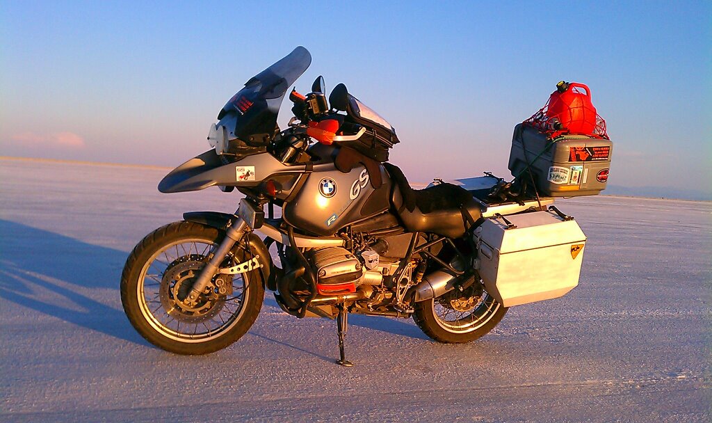 Somewhere in Nevada, I passed a pull out where I noticed someone parked with the car door open, and tinkering under the dash. This struck me as odd, and turned around to see if this person needed help. The pull out has a lot of gravel, which was rather unusual. As I got to the car, a guy looked up and assured me he was ok, so I went on. Exiting the pull out proved to be trickier than I thought, as the edge was steep. Before I knew it my rear wheel skidded to the left and I was down on my right, as was the BeMWu. Fortunately it was a low speed slide, and nothing really happened. I did twist my knee and ankle but I soon recovered. Now it was me the one who needed help. I called the guy up, and we managed to get the motorcycle back up. Getting on it and getting it onto the road were something else, and it took quite a bit of wrestling with gravity to finally get it done.